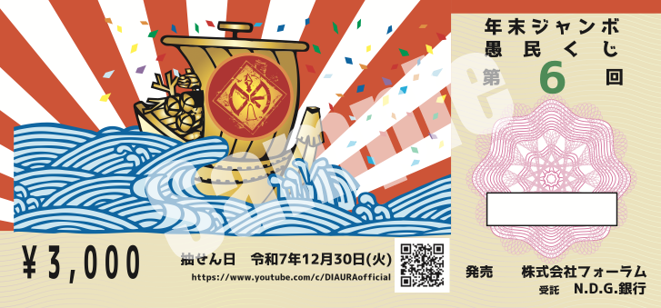 「大晦日直前生配信〜愚民くじ大抽選会SP〜」内にて抽選します。